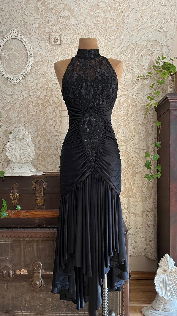 Amazing 1980’s Vintage Black Draped and Ruched Mermaid Dress