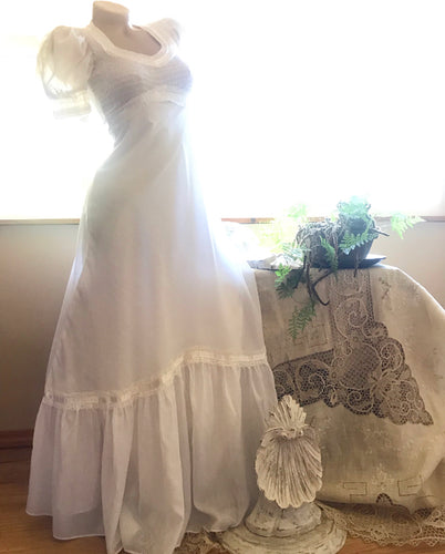 Beautiful 1970's vintage smocked white voile dress by Jody T