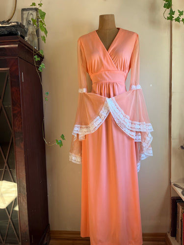 1970’s Vintage Cantaloupe Angel Sleeve Dress