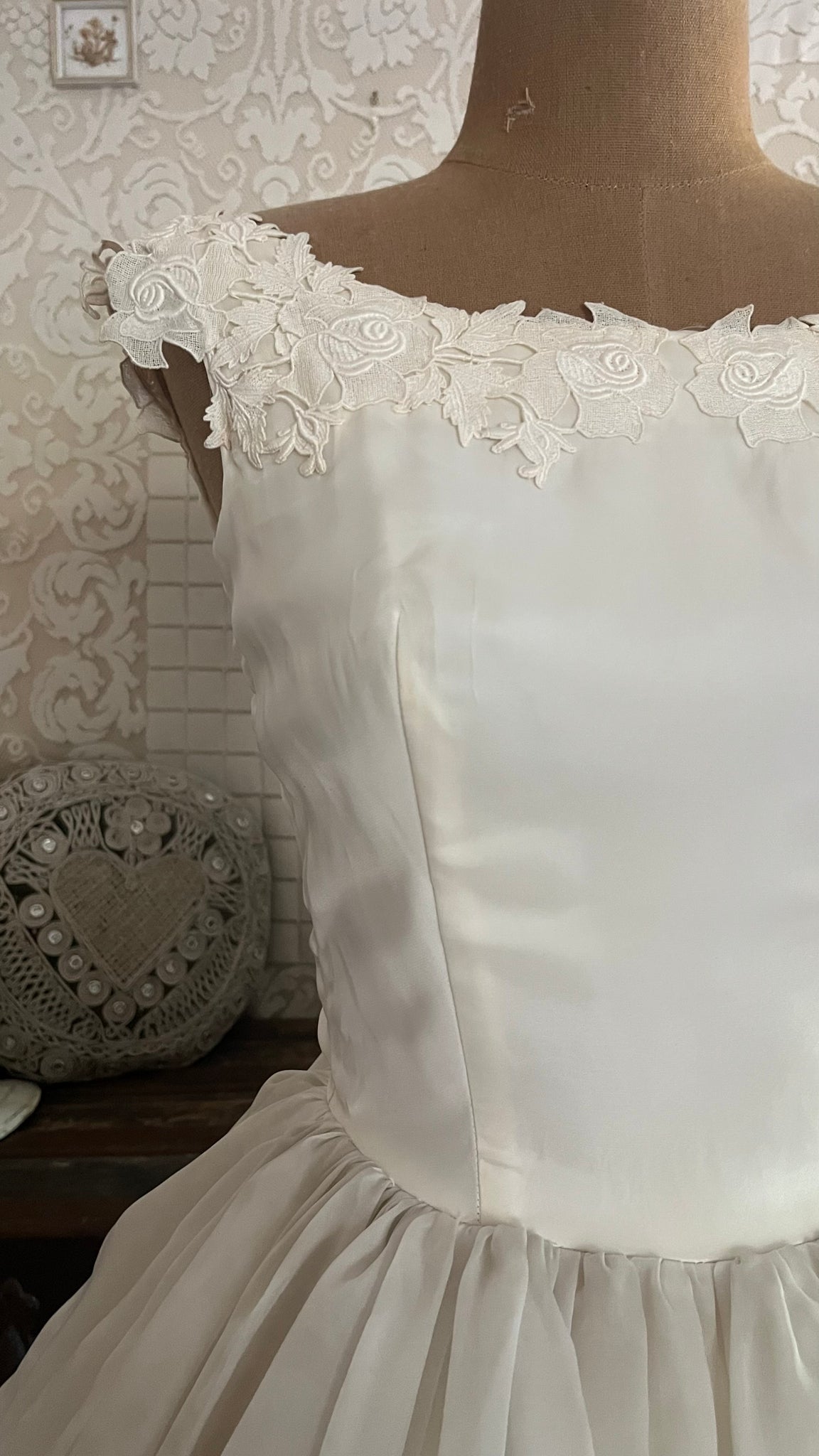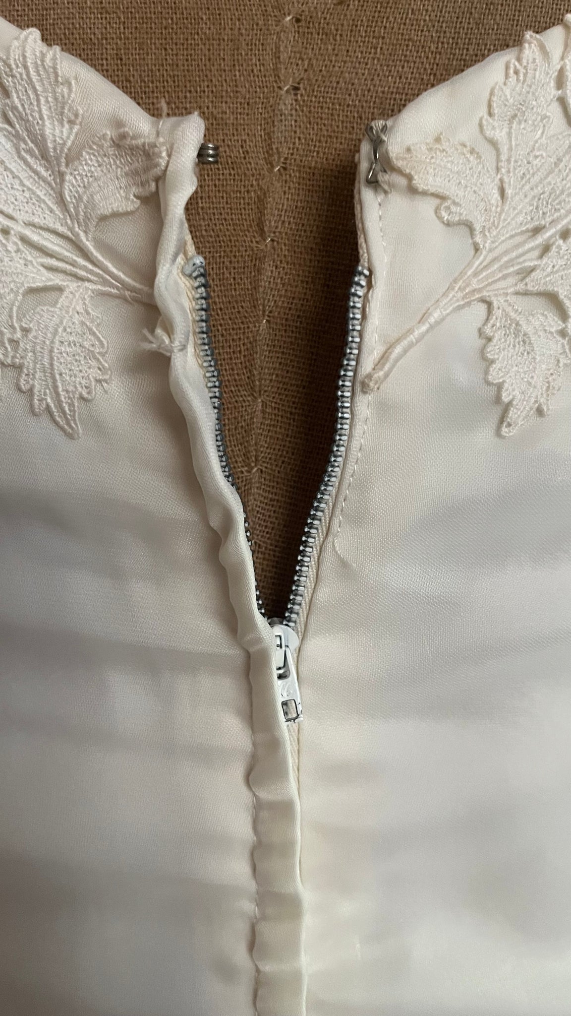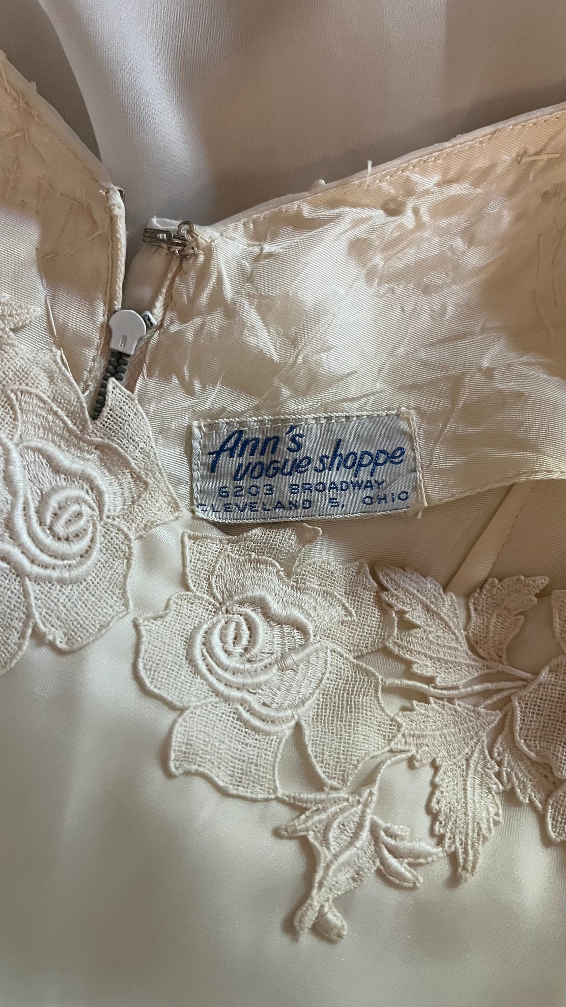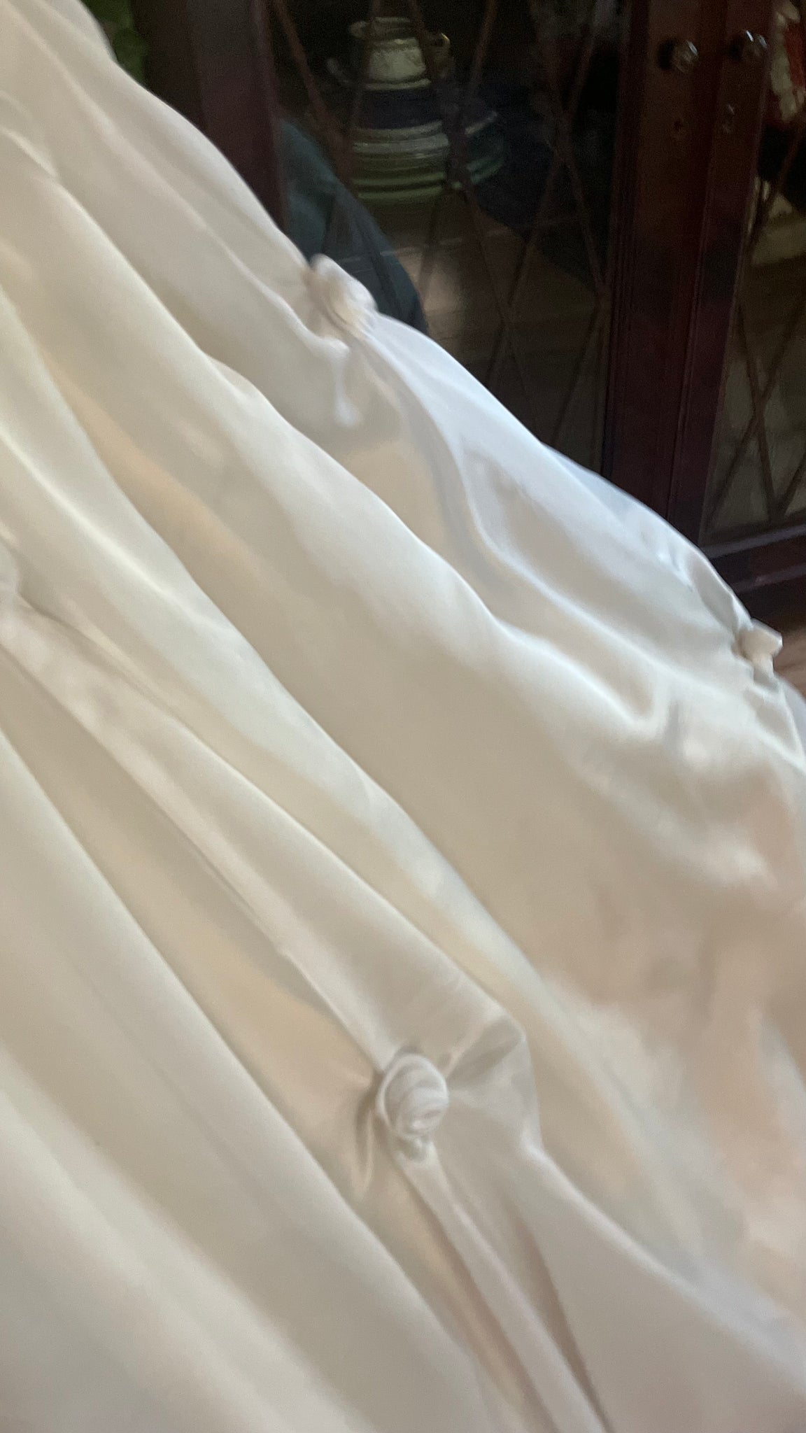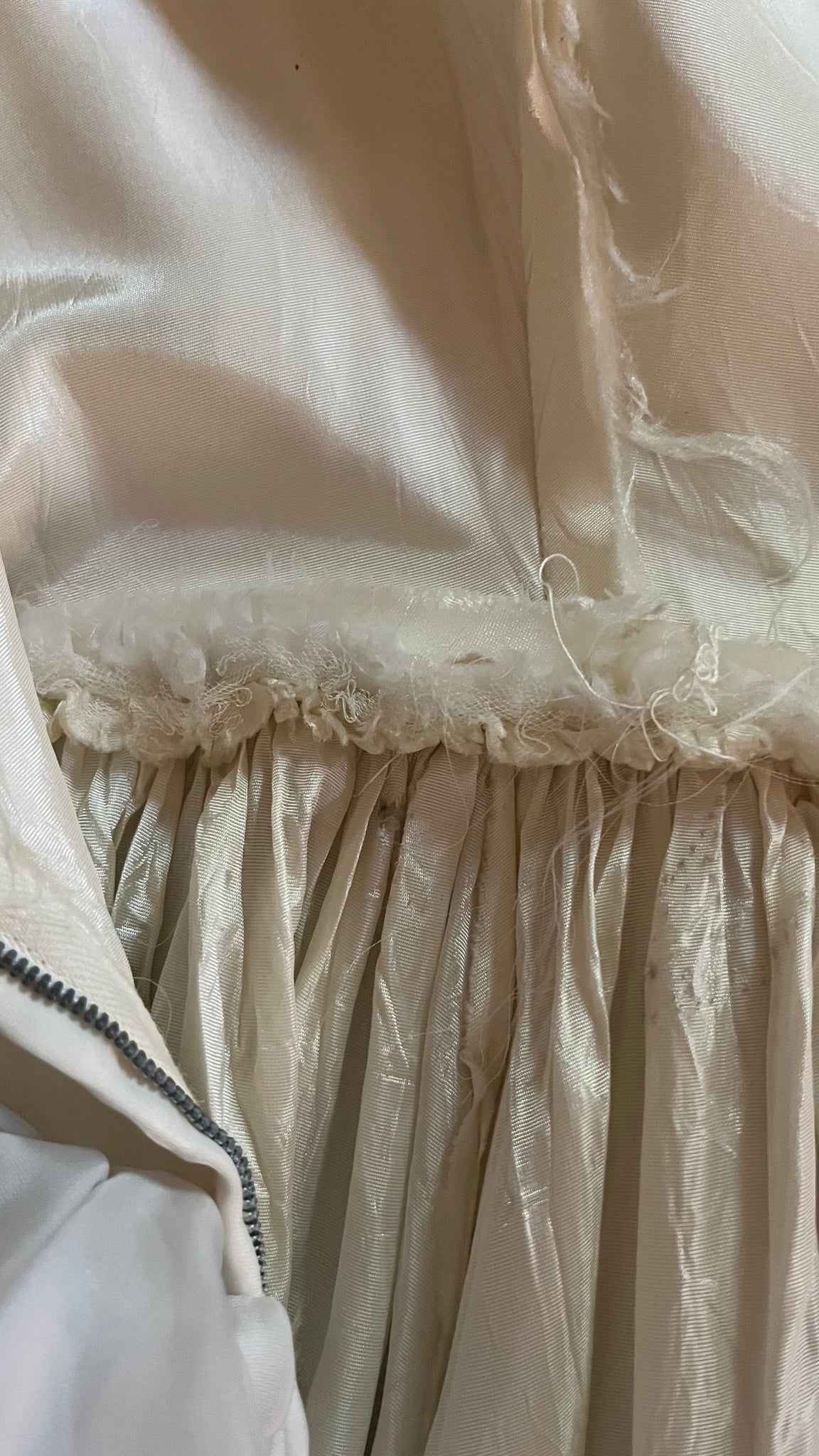 very good condition..has some surface marks on the hem..I’m not sure what it is..paint or tar possibly..maybe a beach wedding? Is it beach tar! Loving this dress more and more!