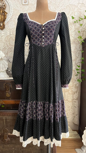 1970’s Vintage Black Calico Gunne Sax Maxi Dress