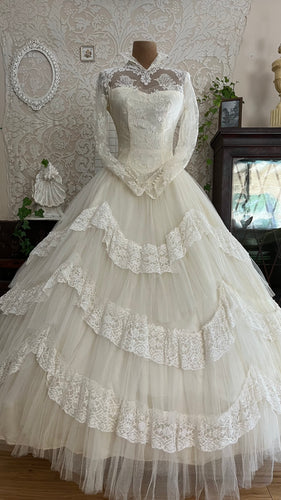 Breathtaking 1950’s Vintage White Tulle and Lace Bridal Gown Wedding Dress
