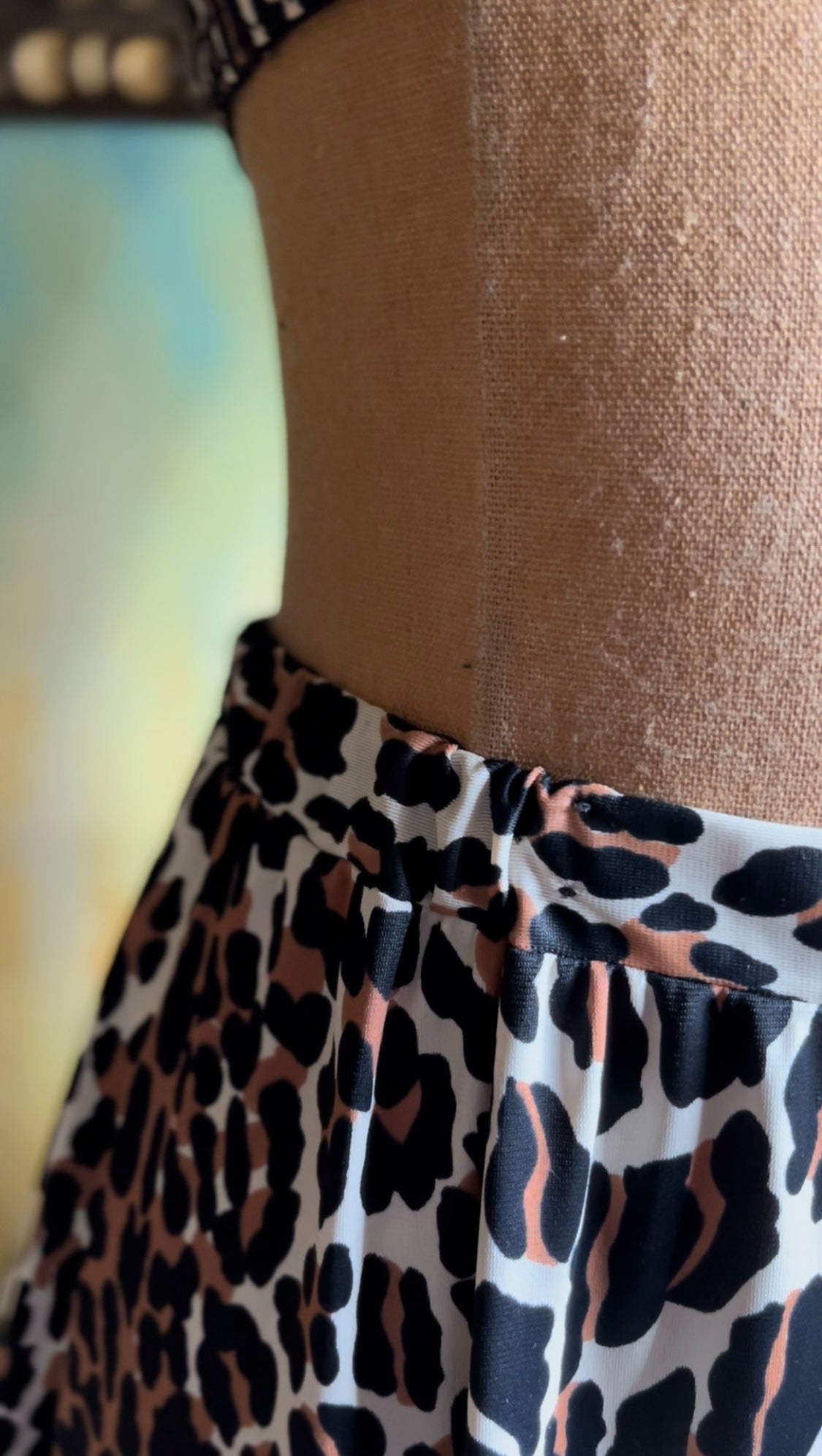 Pictured over a vintage dress, leopard bra, and jeweled belt and not included with the skirt. Original magazine ad is just shown for reference and is also not included.