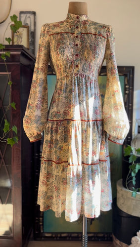 Rare 1970’s Vintage Blackberry and Morning Glory Calico dress by Young Edwardian