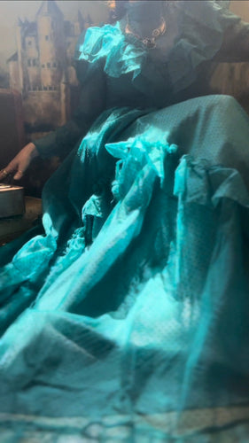 Authentic 1980’s vintage Teal Swiss Dot Chiffon Gunne Sax gown