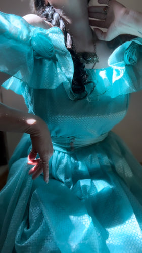 1970’s Vintage Cold Shoulder Ice Blue Ruffle Dress and Belt