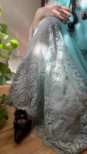 1960’s Vintage Aqua Blue Chiffon and Lace Dress by Miss Elliette of California