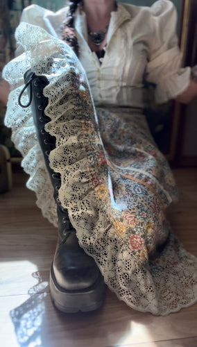 1970’s Vintage Floral Calico and Ribbon Midi Skirt