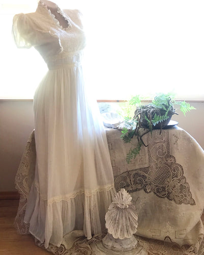 1970’s Vintage Dreamy Ivory Crepe Flutter Sleeve Maxi dress
