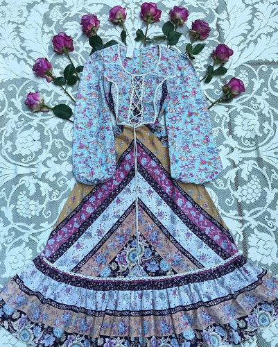 Authentic 1970’s vintage carnation watercolor calico J.C. Penney maxi sundress